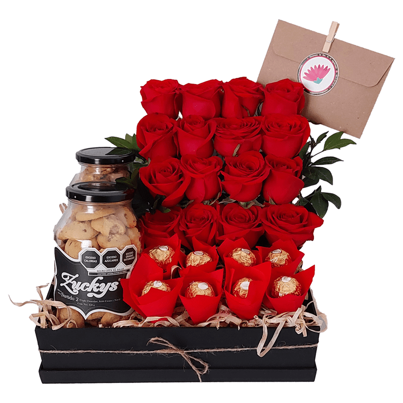 out of 5 1 Dulces momentos, Para ella, Rosas Rosas en escalera, botella y ferreros $1,340 IVA Inc Añadir al carritoView Cart
