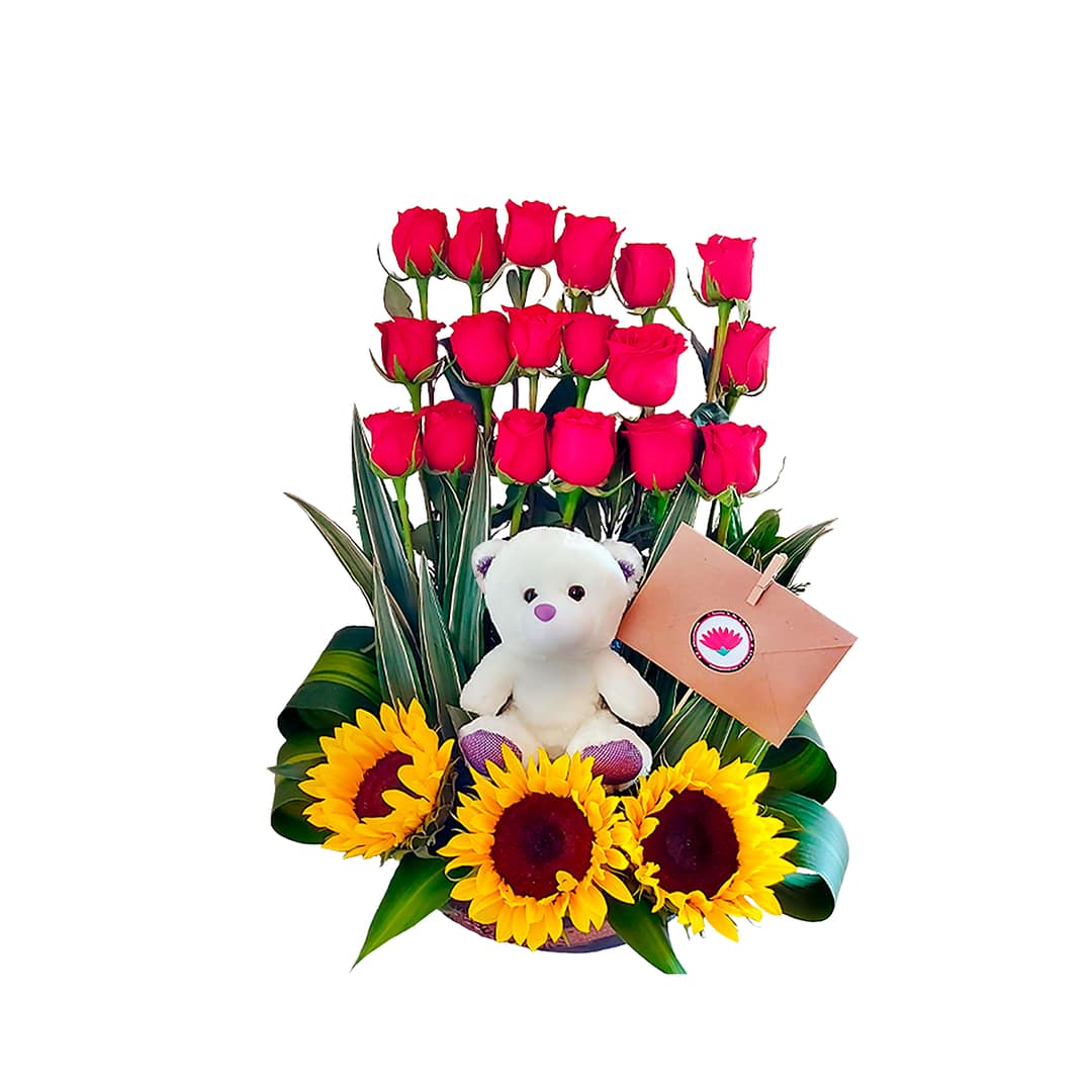 out of 5 1 Fechas Especiales, Rosas Canasta con rosas, oso y globo $940 IVA Inc Añadir al carritoView Cart